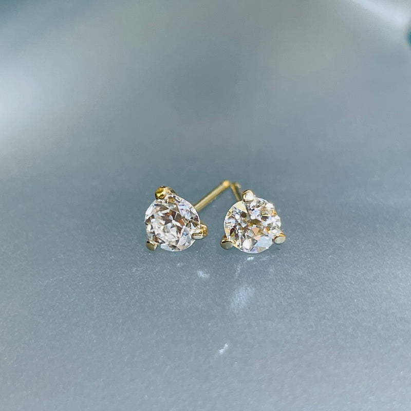 Experience timeless elegance with our .44CTW Old Mine Cut Diamond Stud Earrings. The 3.6mm wide glittering natural old mine cut diamonds are securely held in a solid 14k yellow gold 3 prong martini setting, marked with 14K posts and included backings. Add a touch of luxury to any outfit.