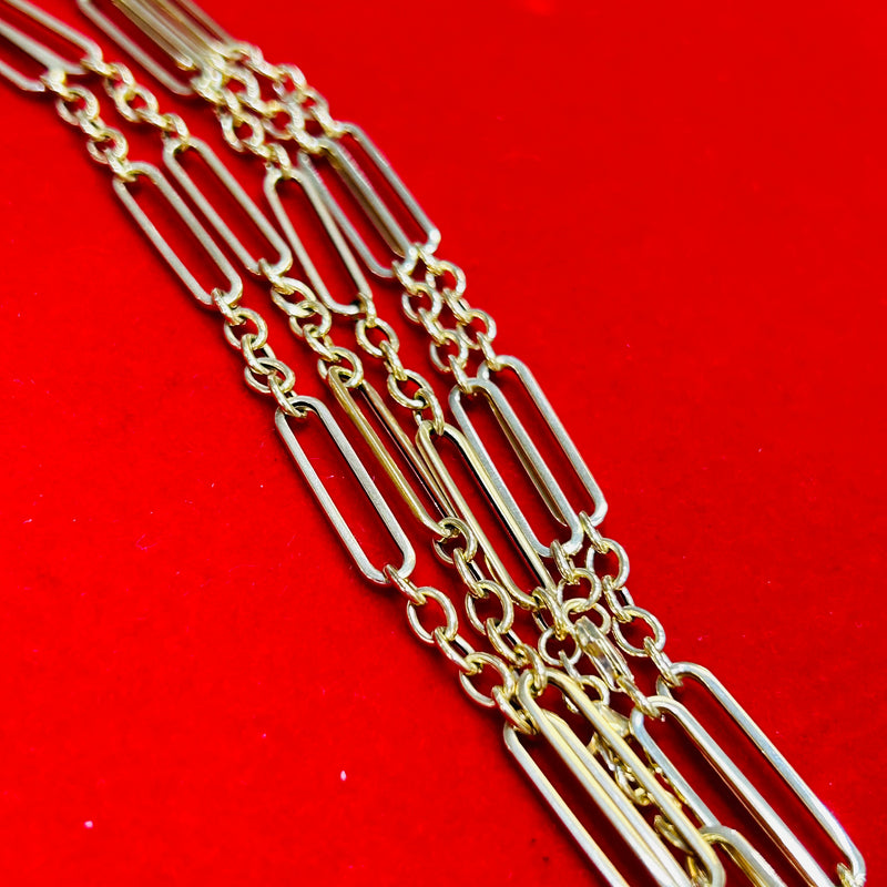 14K Solid Yellow Inter Long Link Necklace Chain 16”