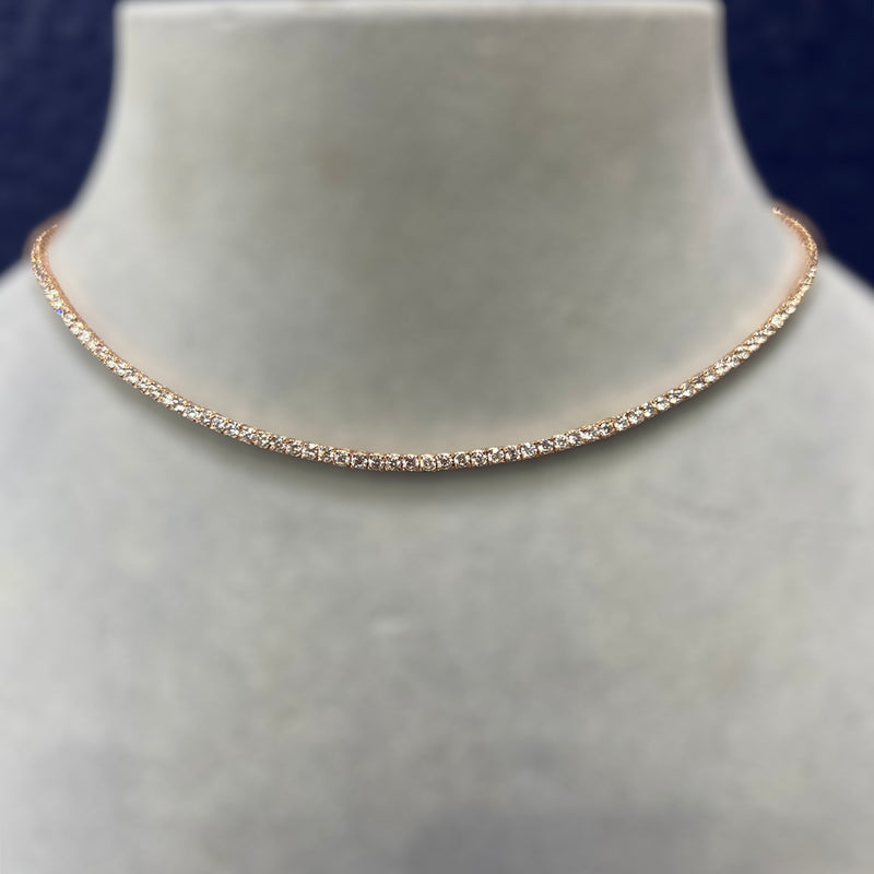 5.73CT Diamond Tennis Necklace 14K Rose Gold 16.5”