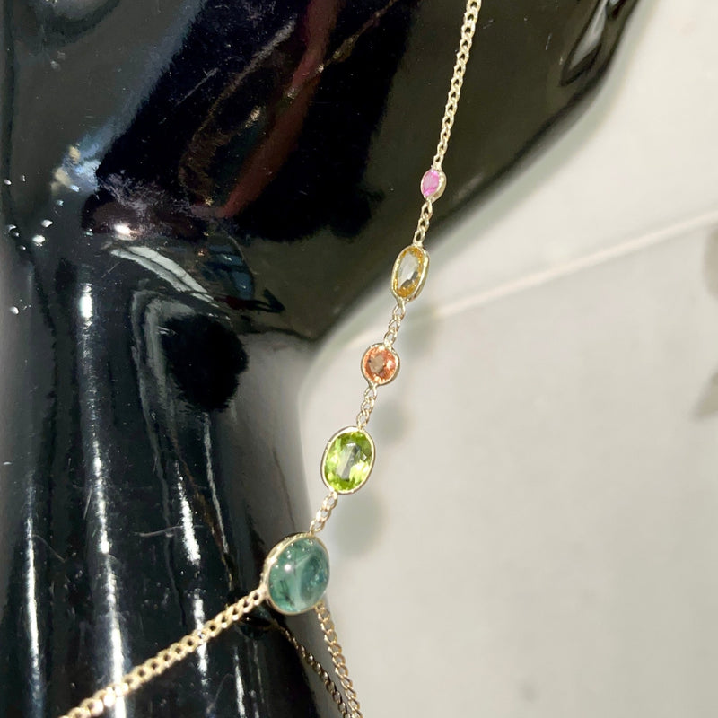 5 Stone Multi Rainbow Hand Chain Solid 14k Yellow Gold