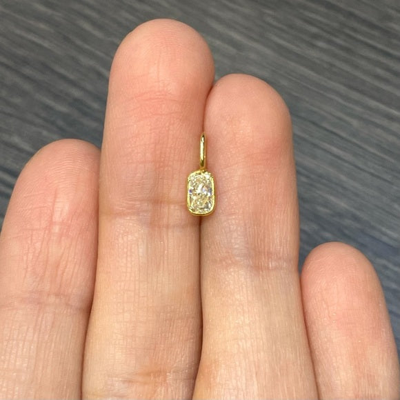 Stunning .50CT fancy light yellow Diamond in a princess cut hand wrapped in a bezel setting in 14k yellow gold.