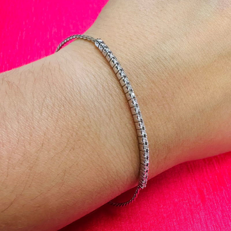 6” 18K 0.26CT White Gold Diamond Flexible Bangle