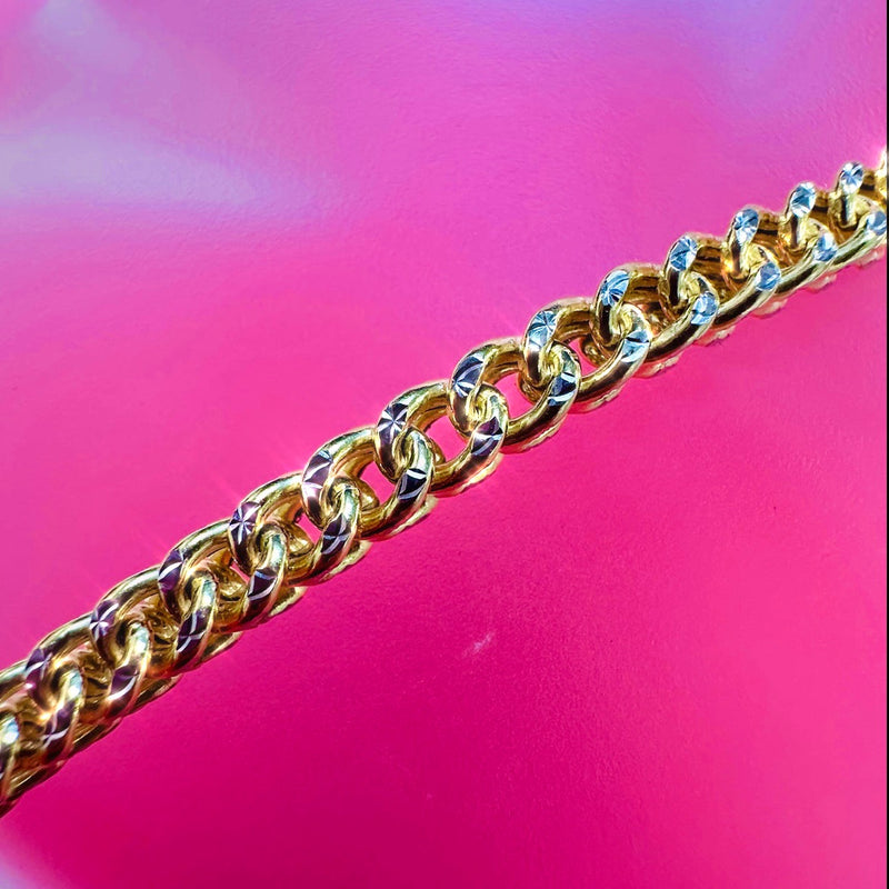 8.25” 10K Yellow Gold With White Diamond Cut Franco Bracelet