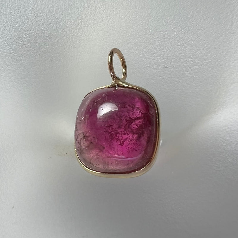 Natural Cabochon Tourmaline 14K Yellow Gold Pendant Charm 15.5x11mm
