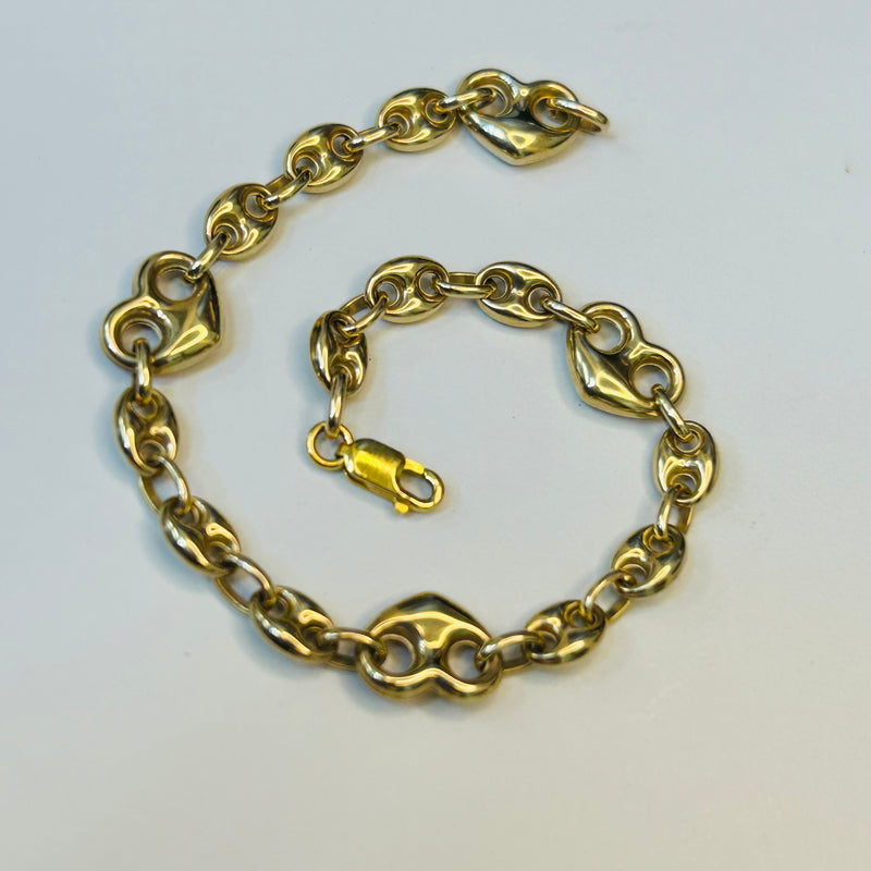 8mm 10K Yellow Gold Wide Heart Mariner Gucci Link Bracelet