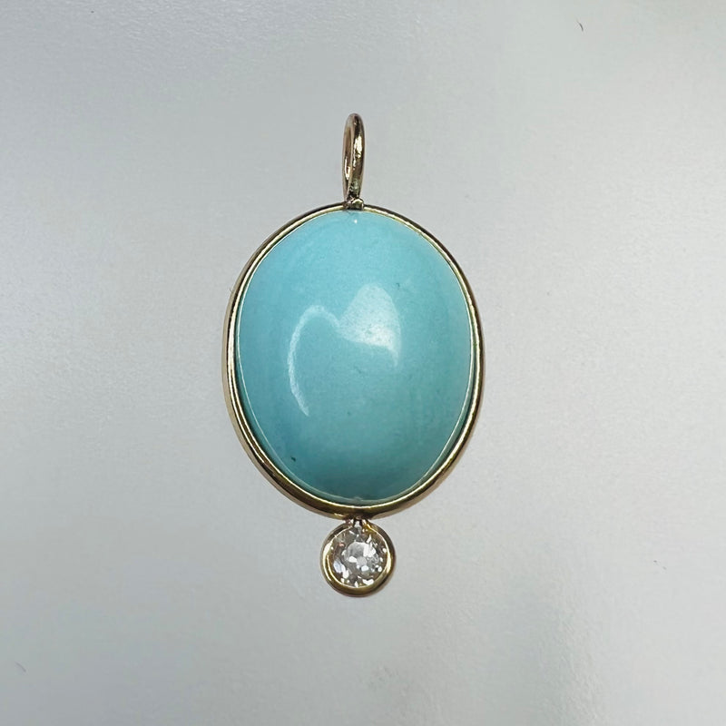 Turquoise and Diamond 14k Yellow Gold Pendant Charm 21x11mm