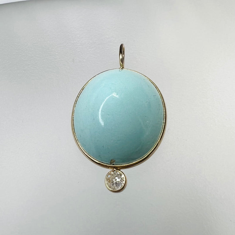 Turquoise and Diamond 14k Yellow Gold Pendant Charm 24x14mm