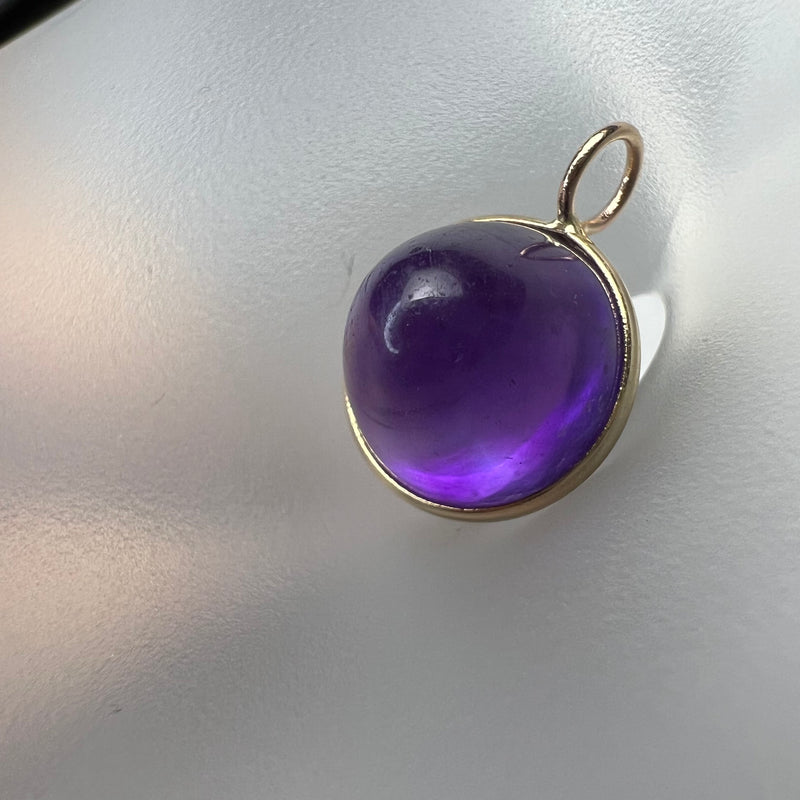 Natural and Earth mined Amethyst Bezel wrapped in 14K Yellow Gold Pendant.