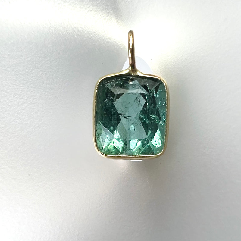 3CT Natural Cushion Tourmaline 14K Yellow Gold Pendant Charm 13x8mm