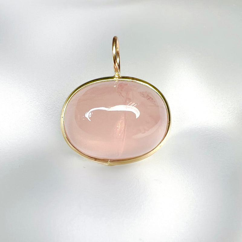 Natural and earth mined Rose quartz bezel wrapped in Solid 14K Yellow Gold.