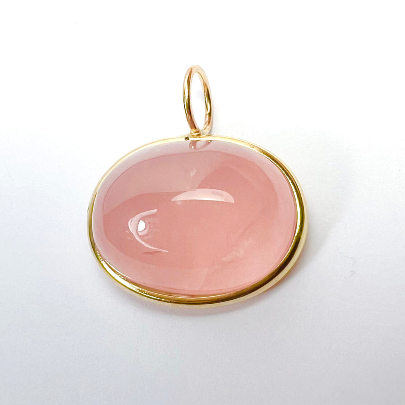Natural and earth mined Rose quartz bezel wrapped in Solid 14K Yellow Gold.