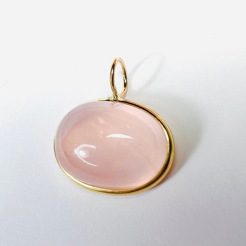 26.5CT Natural Cabochon Rose Quartz 14K Yellow Gold Pendant Charm 25x23mm