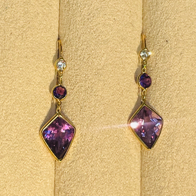 Amethyst and Diamond 14K Yellow Gold Drop Earrings