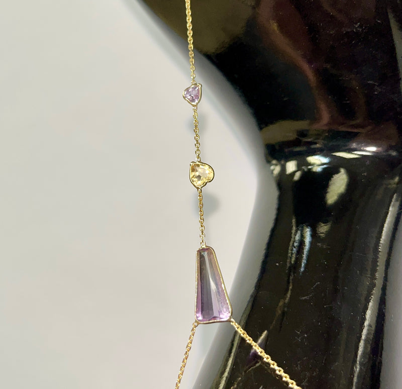 Ametrine Citrine Sapphire Pastel Hand Chain Solid 14k Yellow Gold