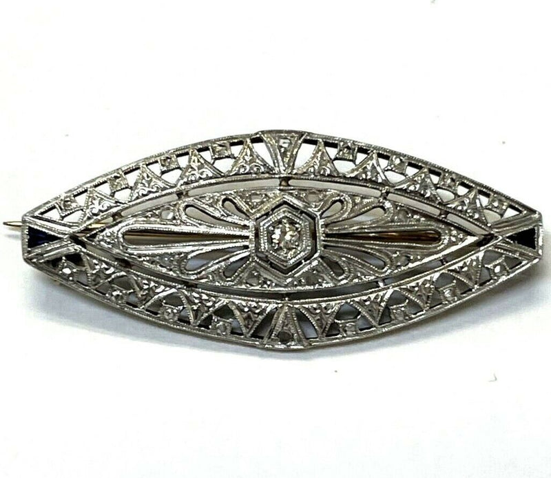 Art Deco Diamond 18K Yellow Gold and Platinum Antique Navette Shaped Pin Brooch