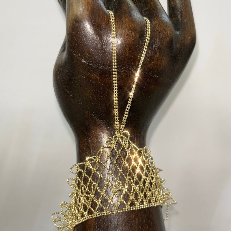 Beautiful Golden Lace 14K Yellow Gold Hand Chain Adjustable