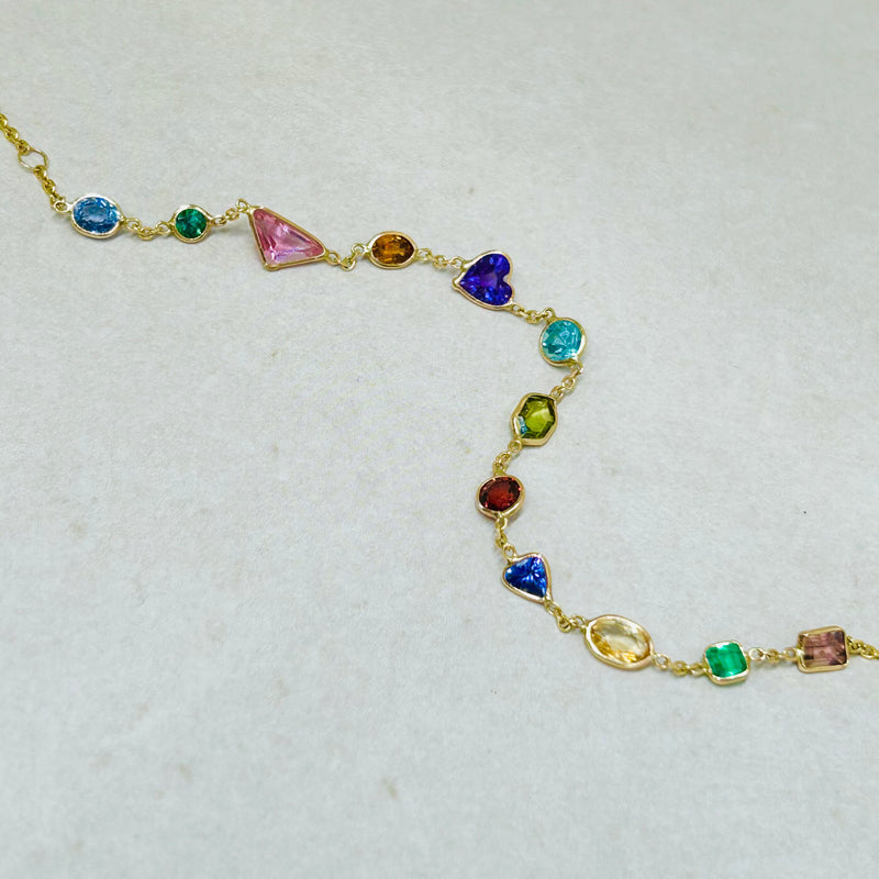 Beautiful Rainbow Colorful Multishape Gem 14K Yellow Gold Bracelet 7.25” Sale price$1,625.89