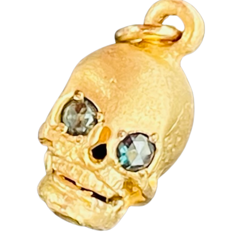 Blue Rose Cut Diamond 18K Yellow Gold Skull Charm Pendant