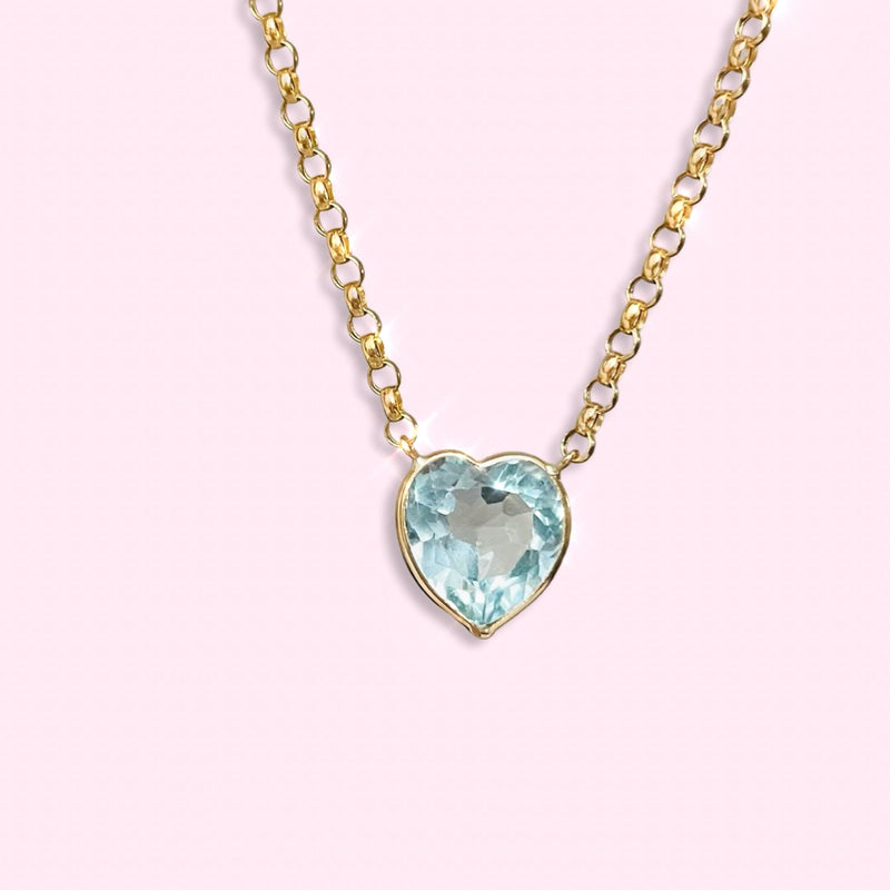 Blue Topaz Heart 14K Yellow Gold Necklace 18”