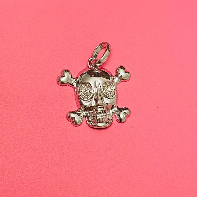 14K White Gold and Diamond Skull and Crossbones Charm Pendant