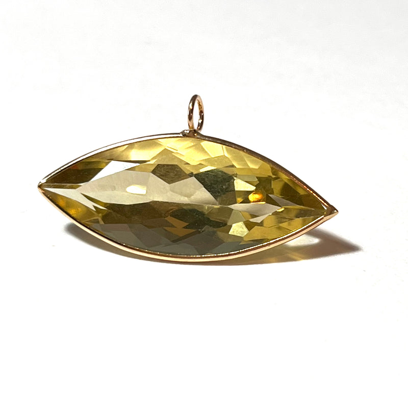 19ct Large Marquise Citrine Solid 14K Yellow Gold Gem Charm