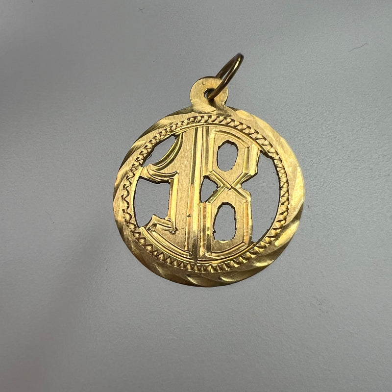 Circle Number 18 Pendant 14K Yellow Gold