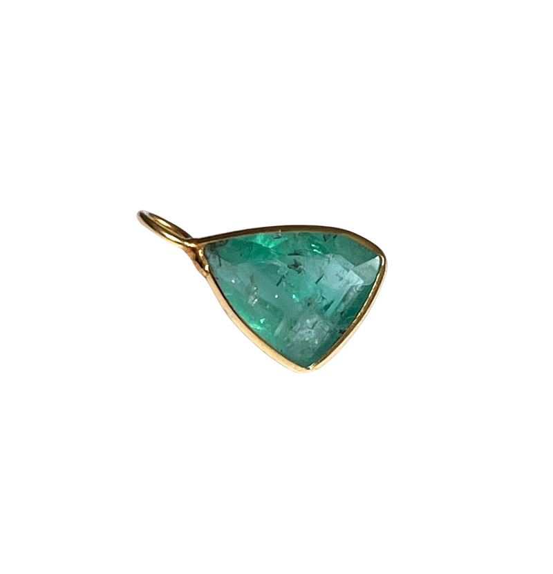2ct Unusual Shape Colombian Emerald 14K Yellow Gold Pendant Charm
