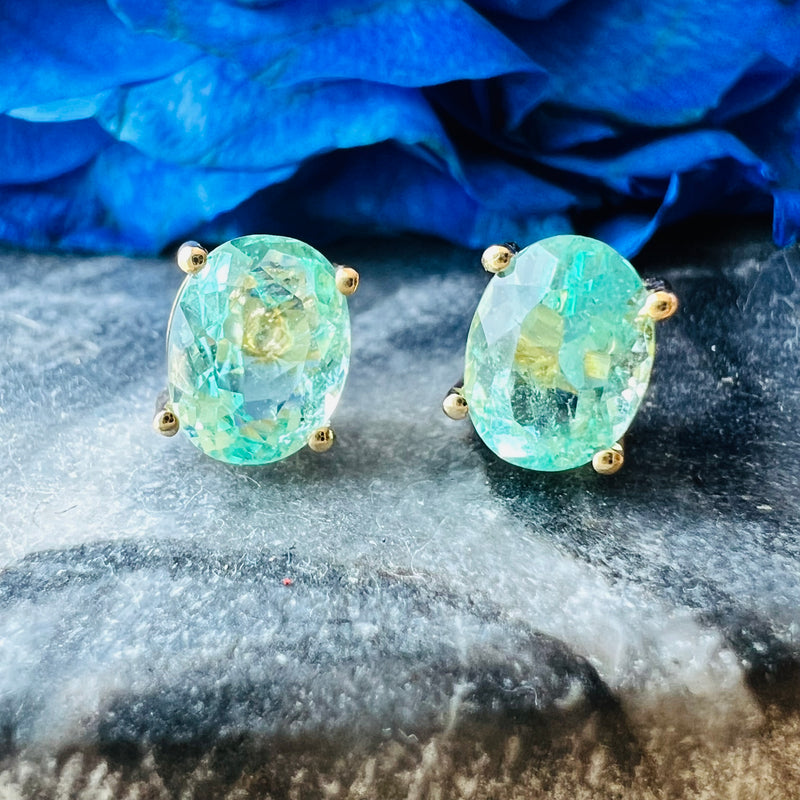 Colombian Emerald 14K Yellow Gold Stud Earrings