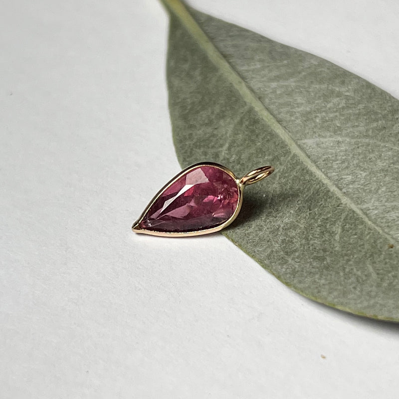 Natural Vibrant Pink Pear Tourmaline 14K Yellow Gold Pendant Charm 17x6.5mm Sale price$234.40