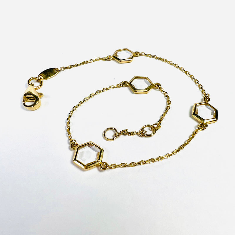 Solid 14K Yellow Gold Hexagon Quartz Cable Chain Bracelet 7.5"