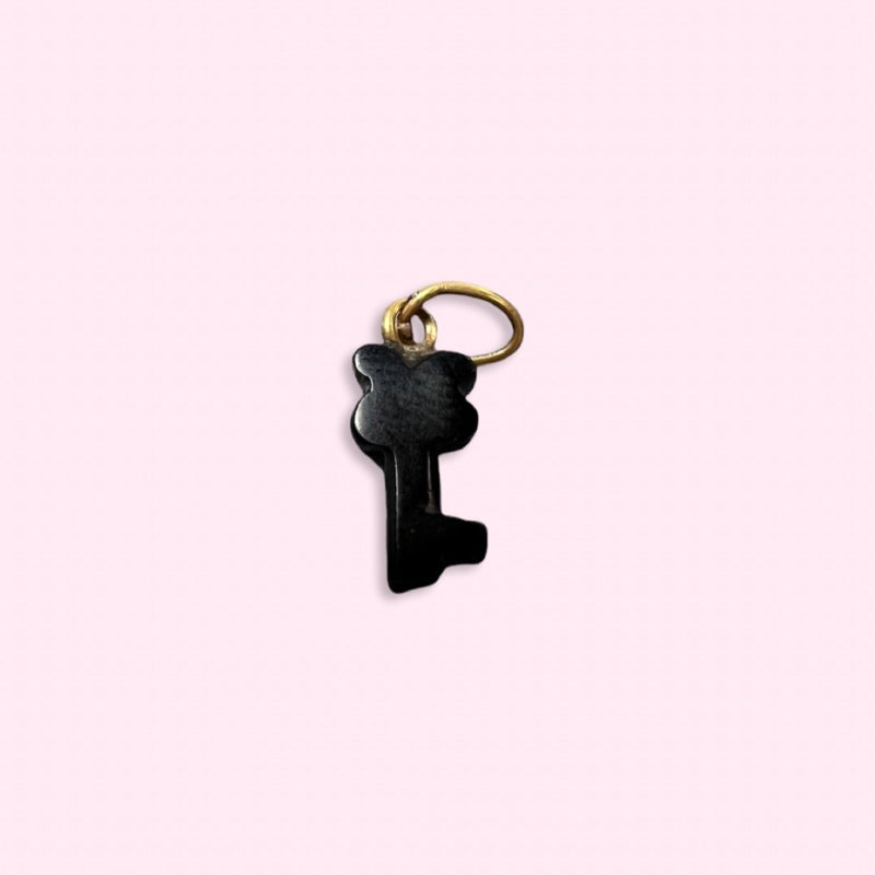 Solid 14K Yellow Gold and Black Onyx Key Pendant Charm