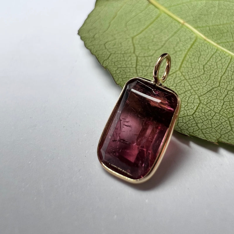 Natural Raspberry Tourmaline 14K Yellow Gold Pendant Charm 12x8mm Sale price$312.50