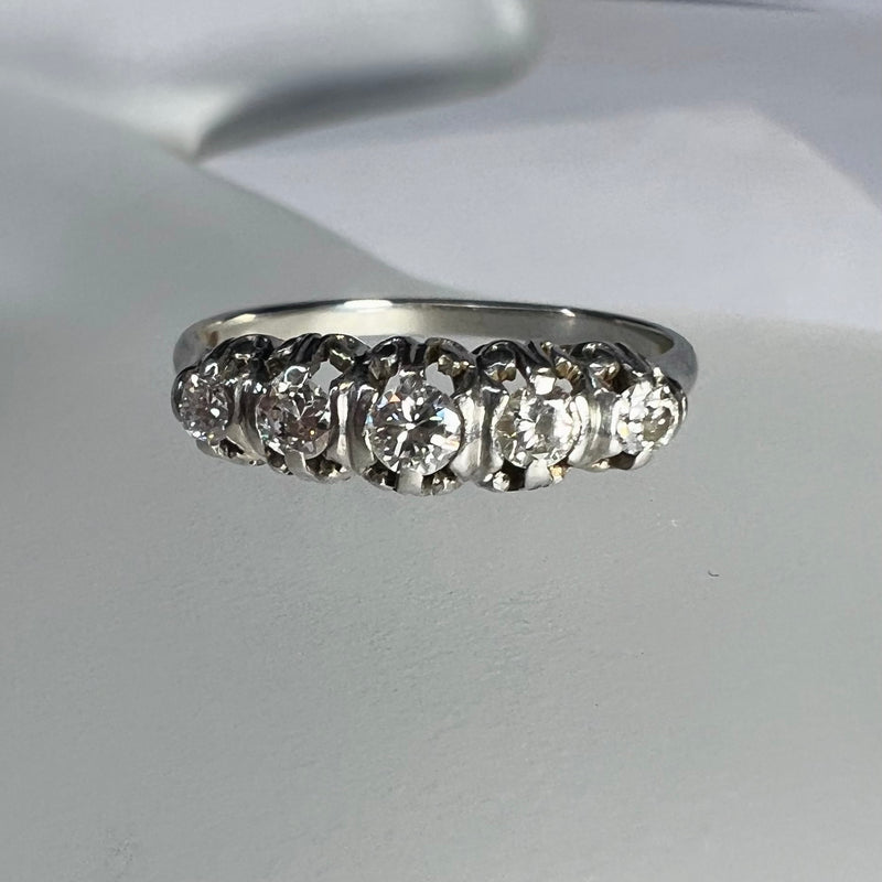 Antique 18K White Gold Diamond .30CTW Ring Size 6.75