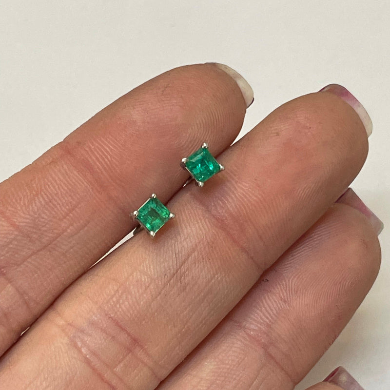 .50CT Colombian Emerald 14K White Gold Stud Earrings Sale price$355.37