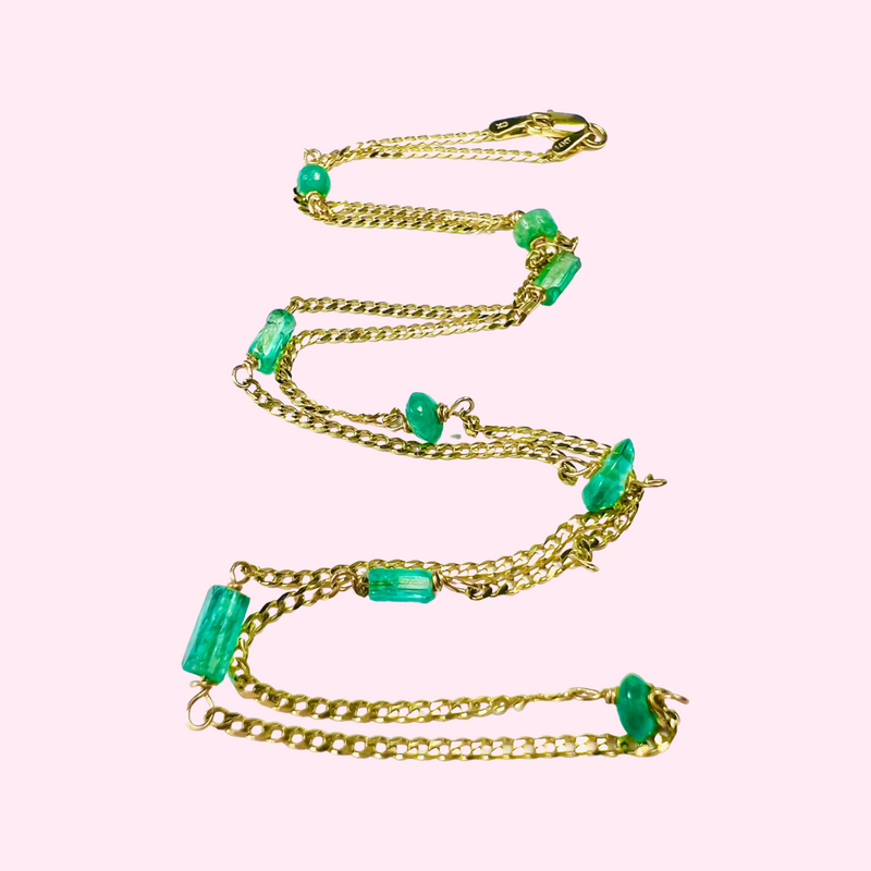 Natural Rough Emerald Necklace 14K Yellow Gold 17.5" Hand Made