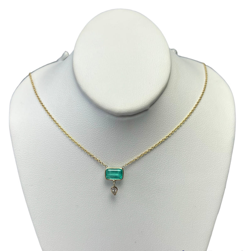 Floating a gorgeous Emerald and pear cut diamond , both natural and earth mined