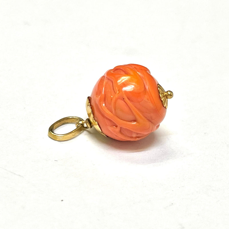 Orange Glass 14K Yellow Gold Bead Charm Pendant Sale price$71.06