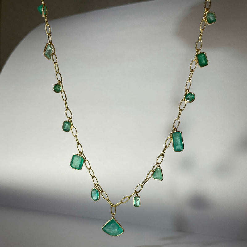 10.3CTS Multi Shape Colombian Emeralds 16" 14K Yellow Gold Dangle Necklace Sale price$4,976.40