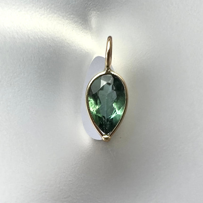 .82CT Natural Pear Tourmaline 14K Yellow Gold Pendant Charm 14x6mm