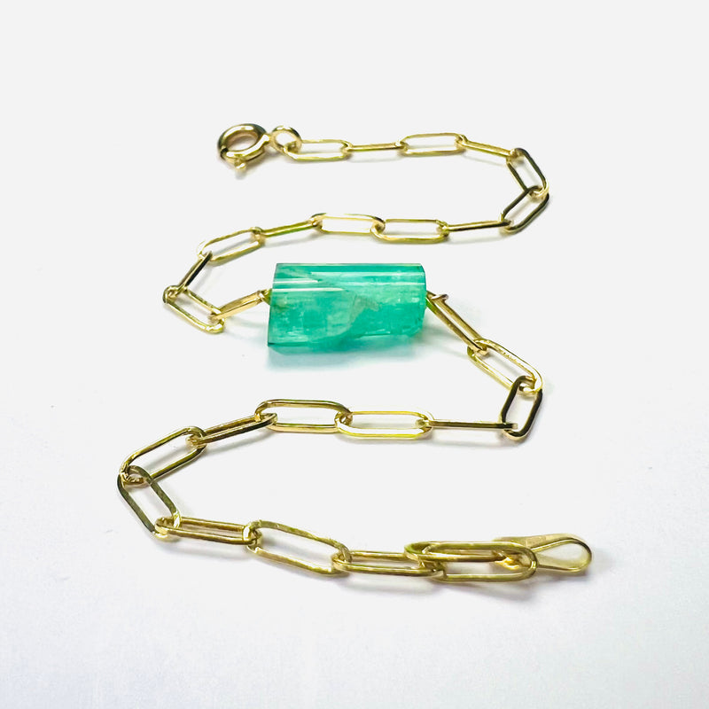 Rough Emerald Bracelet in Solid 14k Yellow Gold 6"