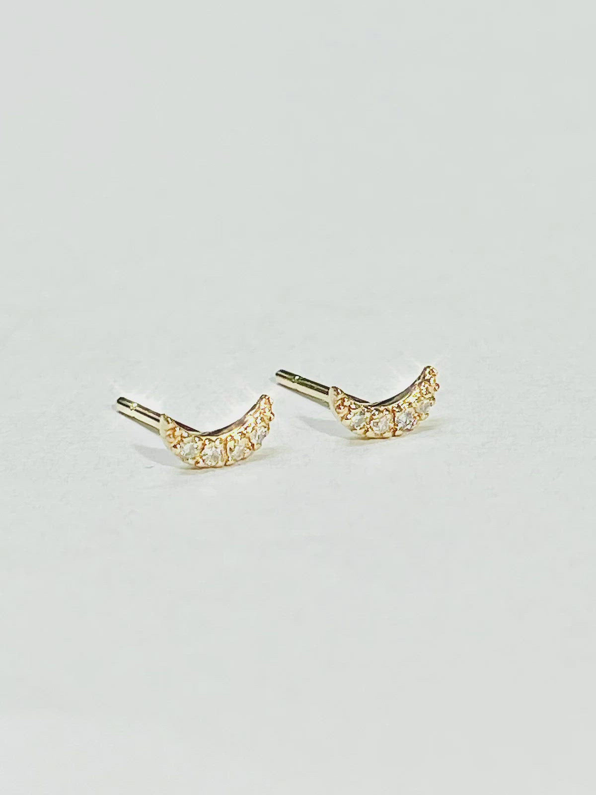 Glittering Diamond Celestial Crescent Moon Earrings 14K Yellow Gold 6x3mm