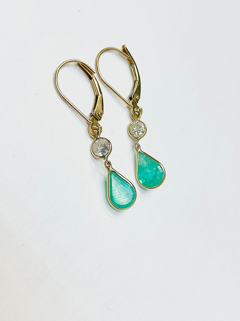 2CT Emerald and .30CT Diamond 14K Yellow Gold Lever Back Drop Down Earrings Sale price$1,335.40