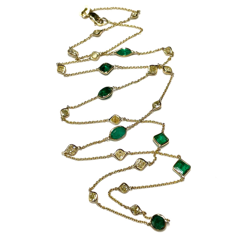 Emerald Diamond Necklace By The Yard in Solid 14k Yellow Gold