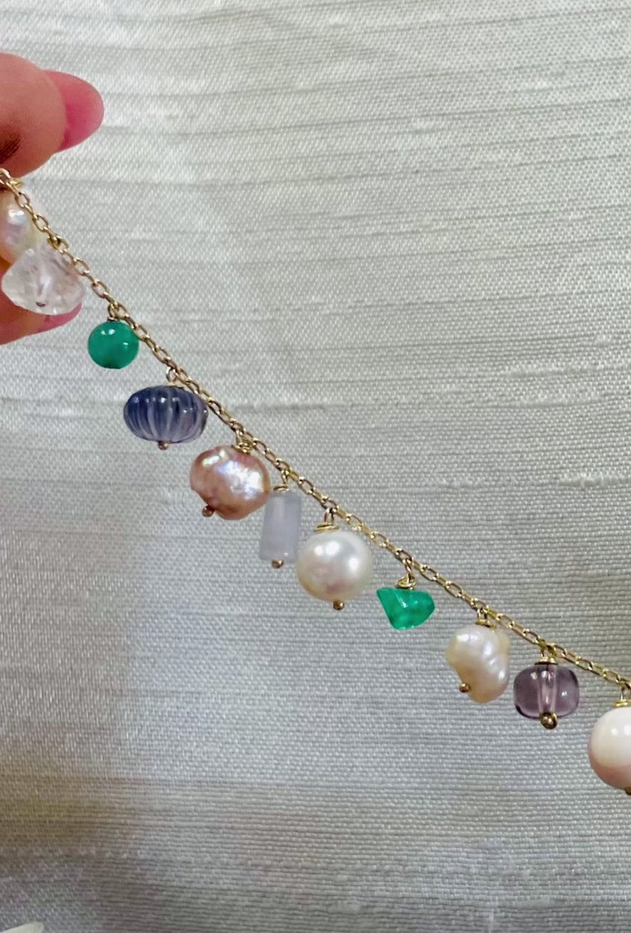 Fairy Garden Solid 14K Yellow Gold Multi Gem Pastel Charm Bracelet Sale price$830.80