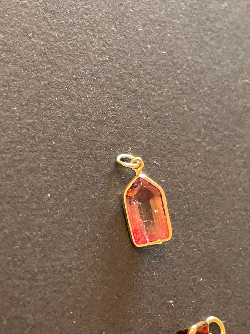 Fine 1.4CT Bi Color Natural Watermelon Tourmaline in Solid 14K Yellow Gold Pendant Charm 15x6mm