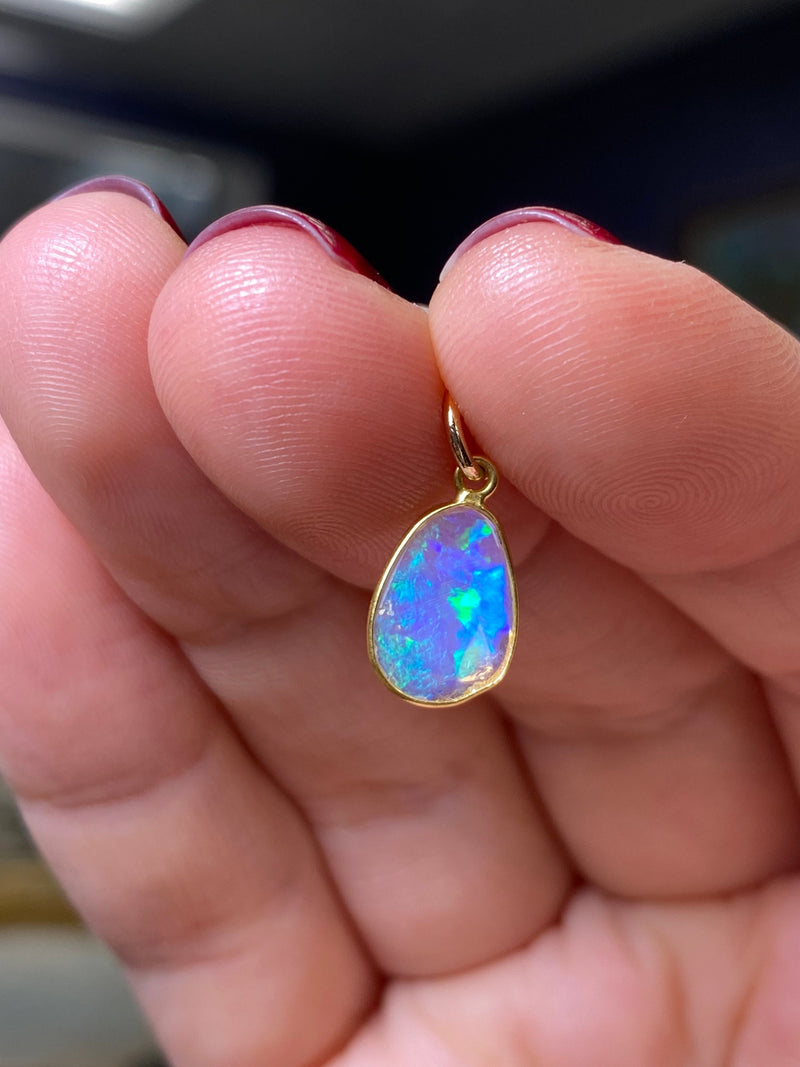 Opal Bezeled in Solid 14K Yellow Gold Pendant Charm 16x7mm