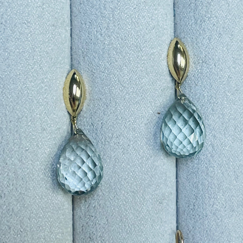 Green Amethyst Briolette 14K Yellow Gold Drop Earrings