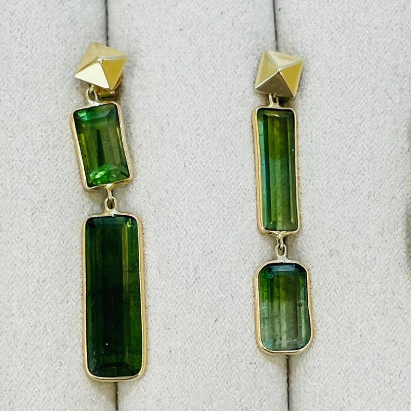 Green Tourmaline 14K Yellow Gold Drop Earrings