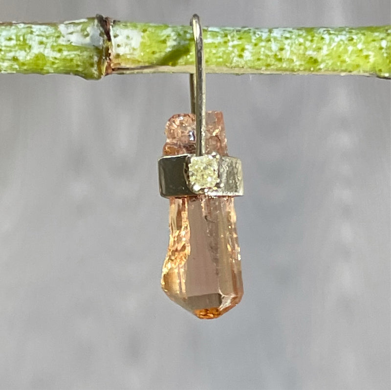 a beautiful natural rough Imperial Topaz, set in a solid 14K yellow gold setting with a long bail.