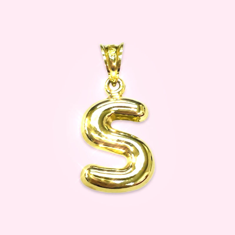 Initial S Puffy Balloon Letter 10K Yellow Gold Pendant